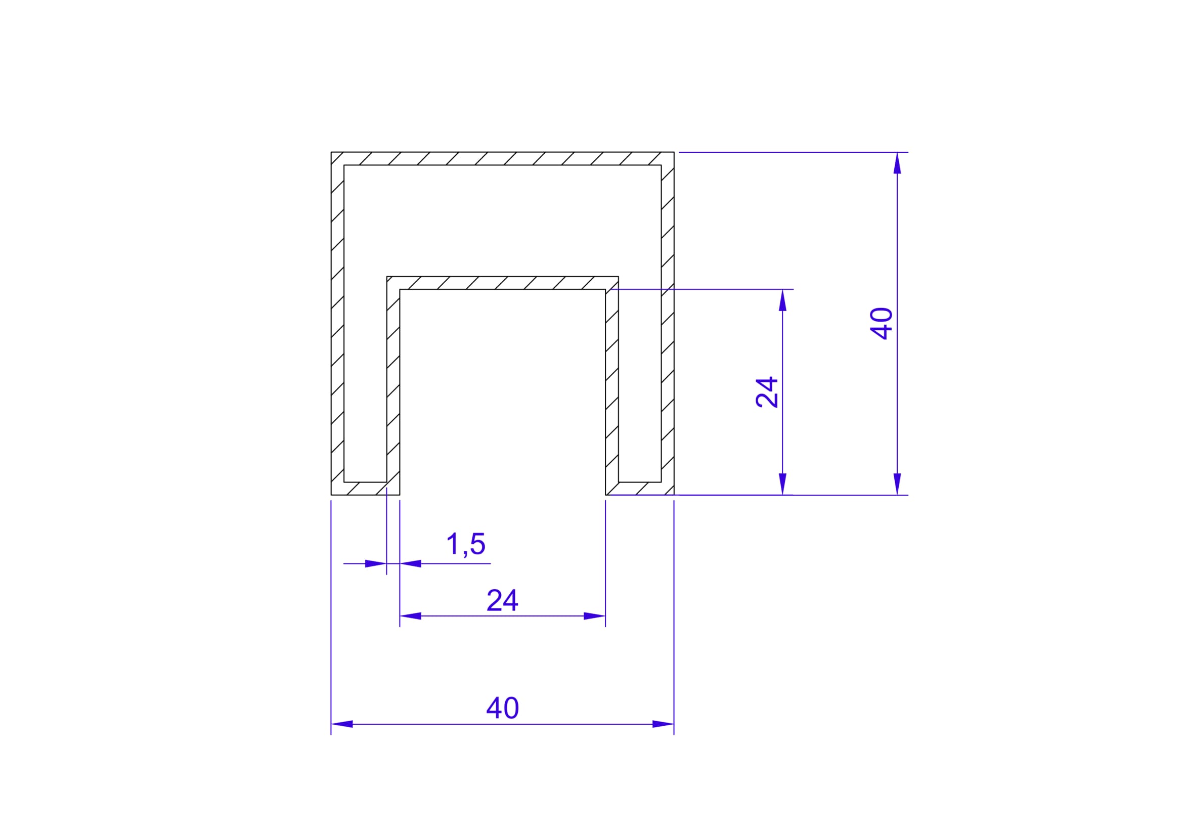 - Handle with channel for rubber gasket with cross-section - 24x24mm