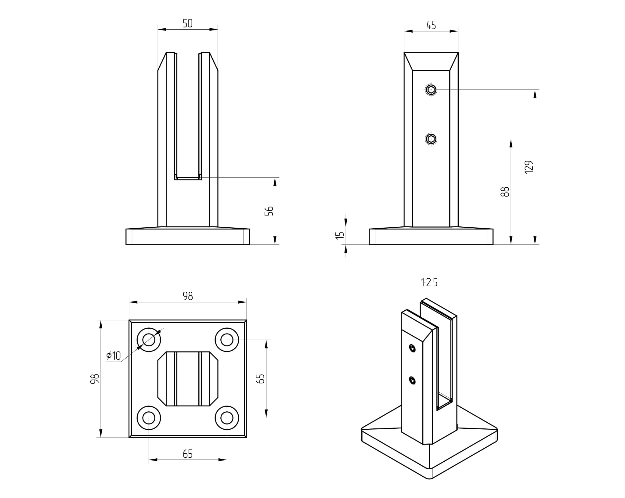 - Mounting foot 98x98mm