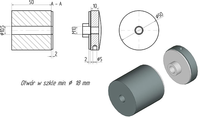 - Минимальное монтажное отверстие в стекле - 18 мм